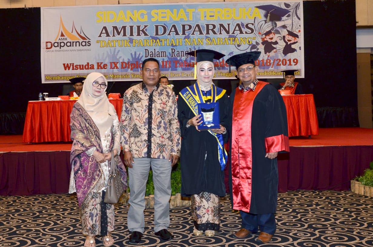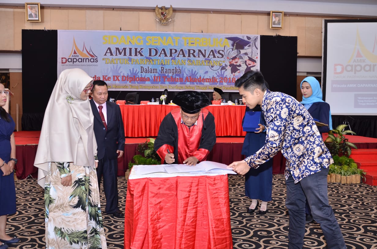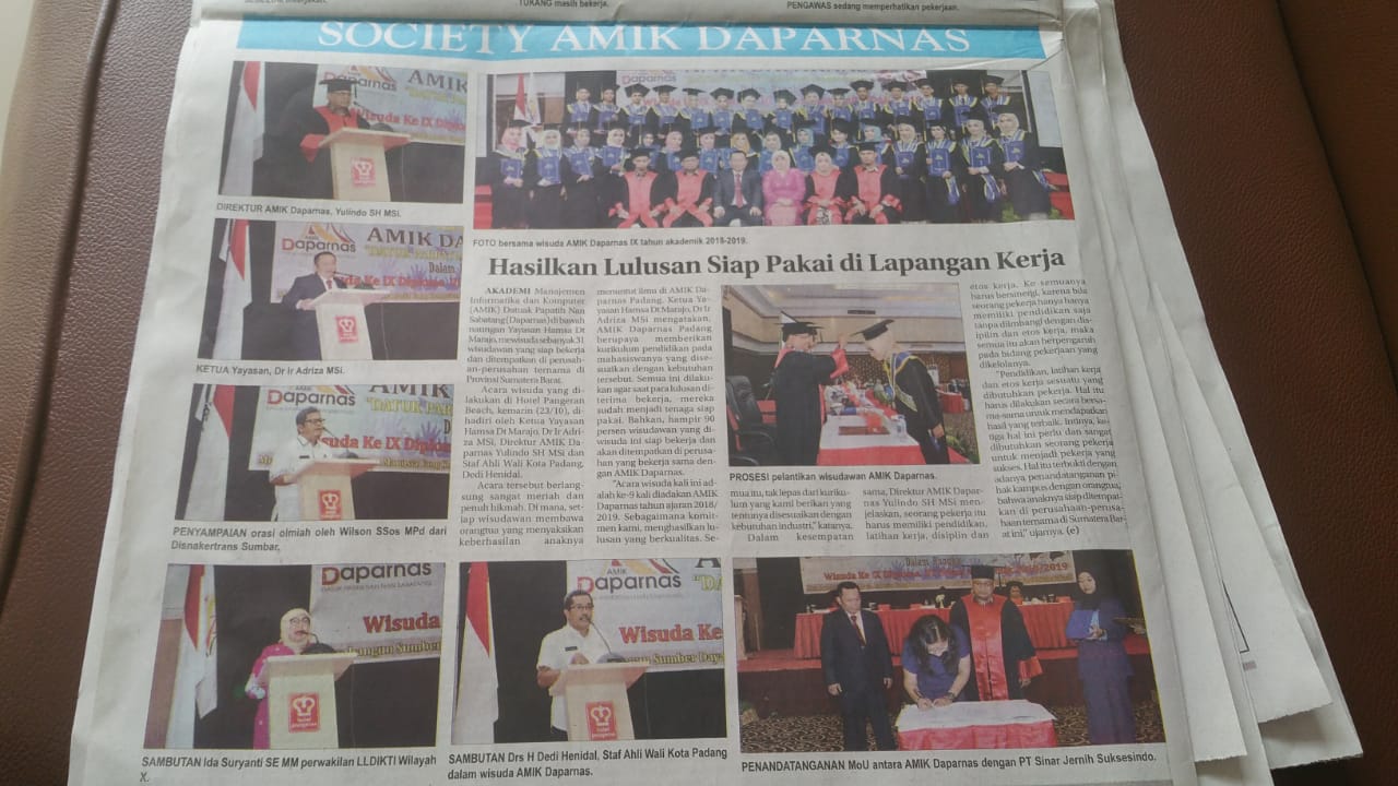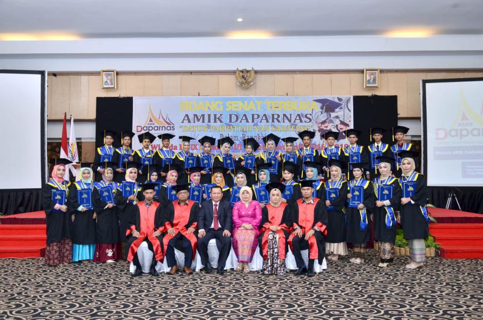 Pada hari Rabu, Oktober 2019 AMIK Daparnas melaksanakan wisuda ke- IX tahun akademik 2018 – 2019. Sebanyak 31 mahasiswa/mahasiswi di wisuda pada hari itu, 70% wisudawati sudah bekerja di perusahaan BUMN dan Swasta di Propinsi Sumatra Barat.